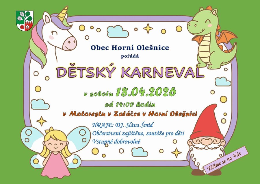 Úvod > Dění v obci > Aktuality > Pozvánka na "Dětský karneval" v Horní Olešnici dne 18.04.2026